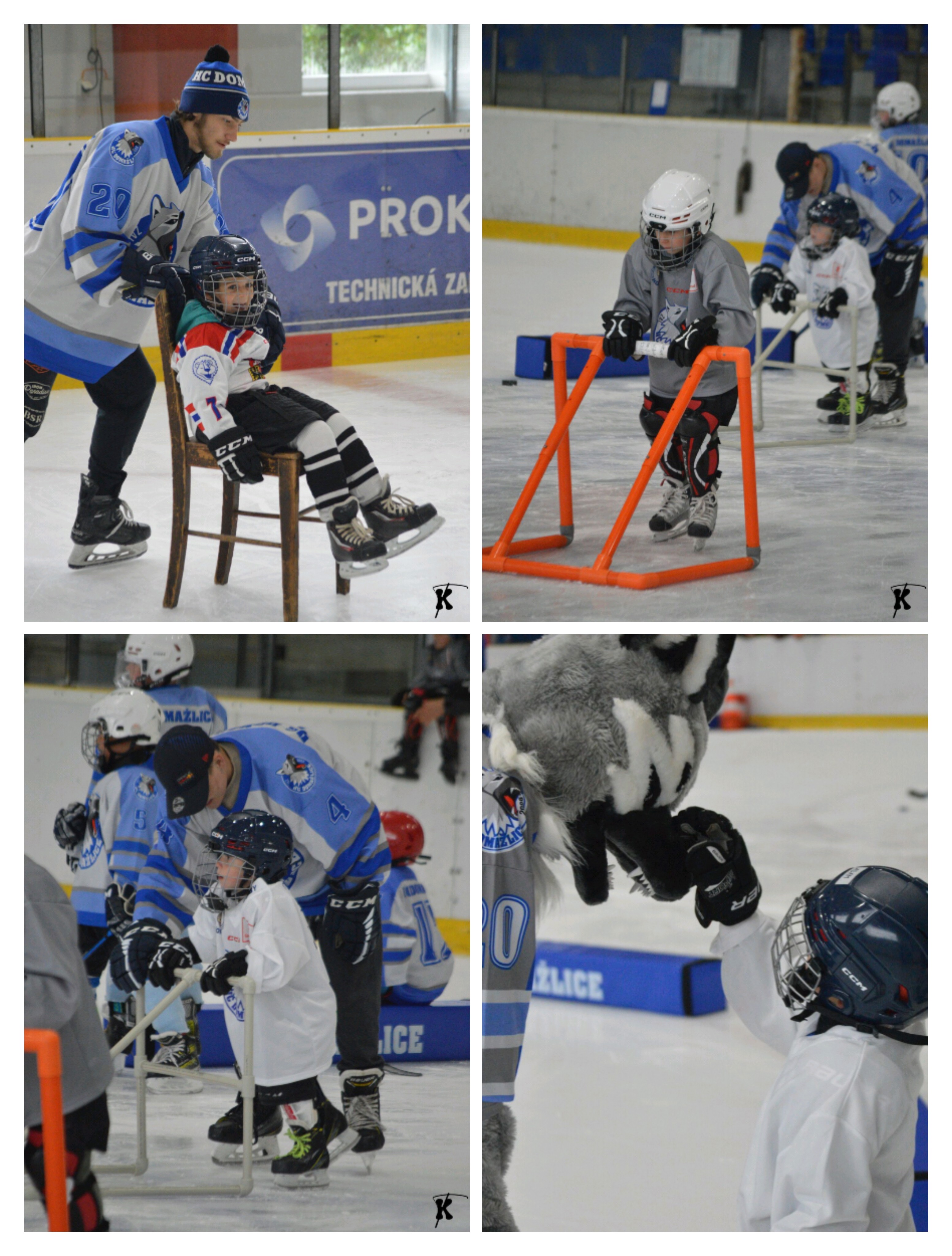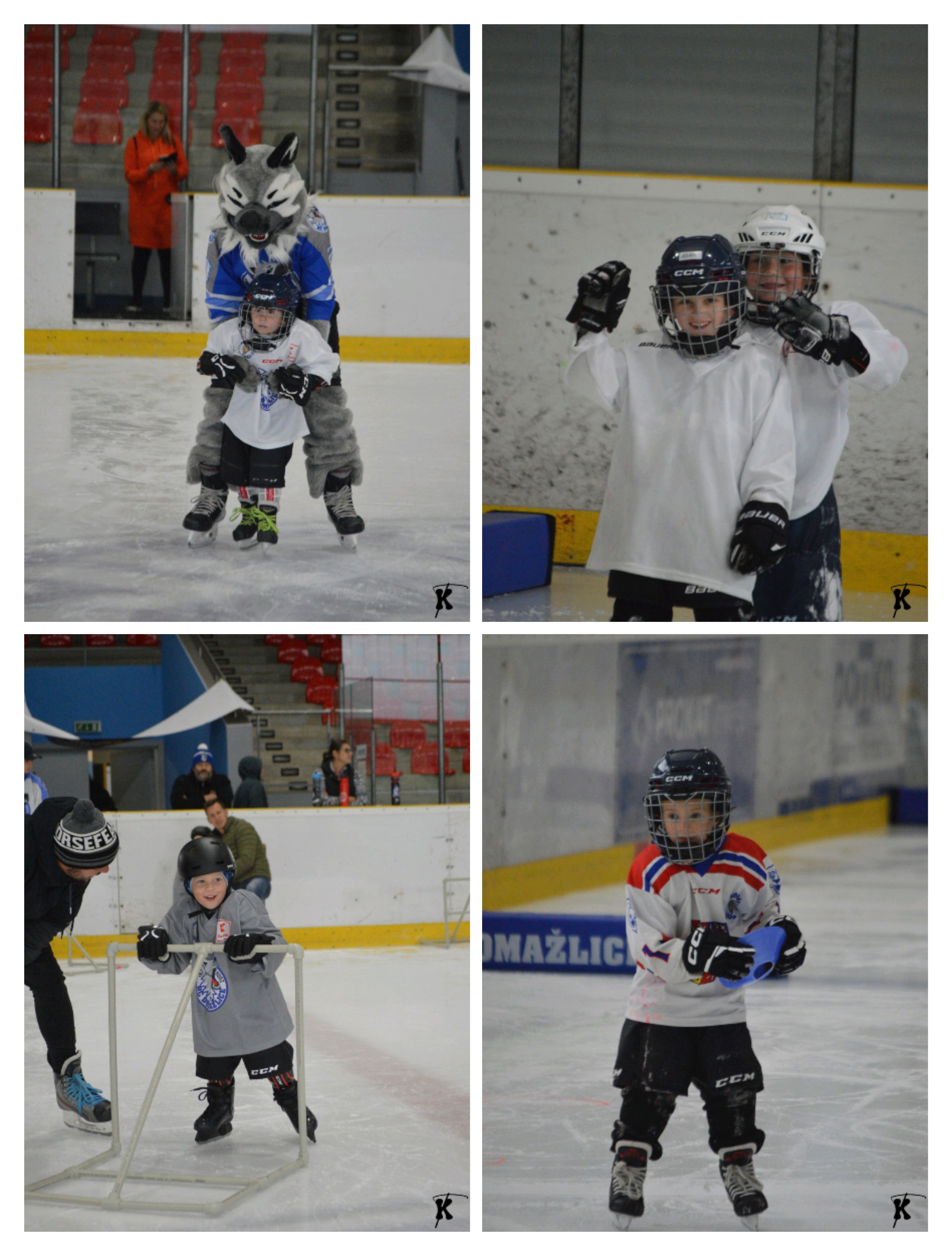 probíhalo ve veselé atmosféře za doprovodu klubového maskota. Své umění ukázali i malí hokejisté a hokejistky z kategorie 3.+ 4. třídy v rámci vzorového tréninku a ukázky minihokeje. Program na